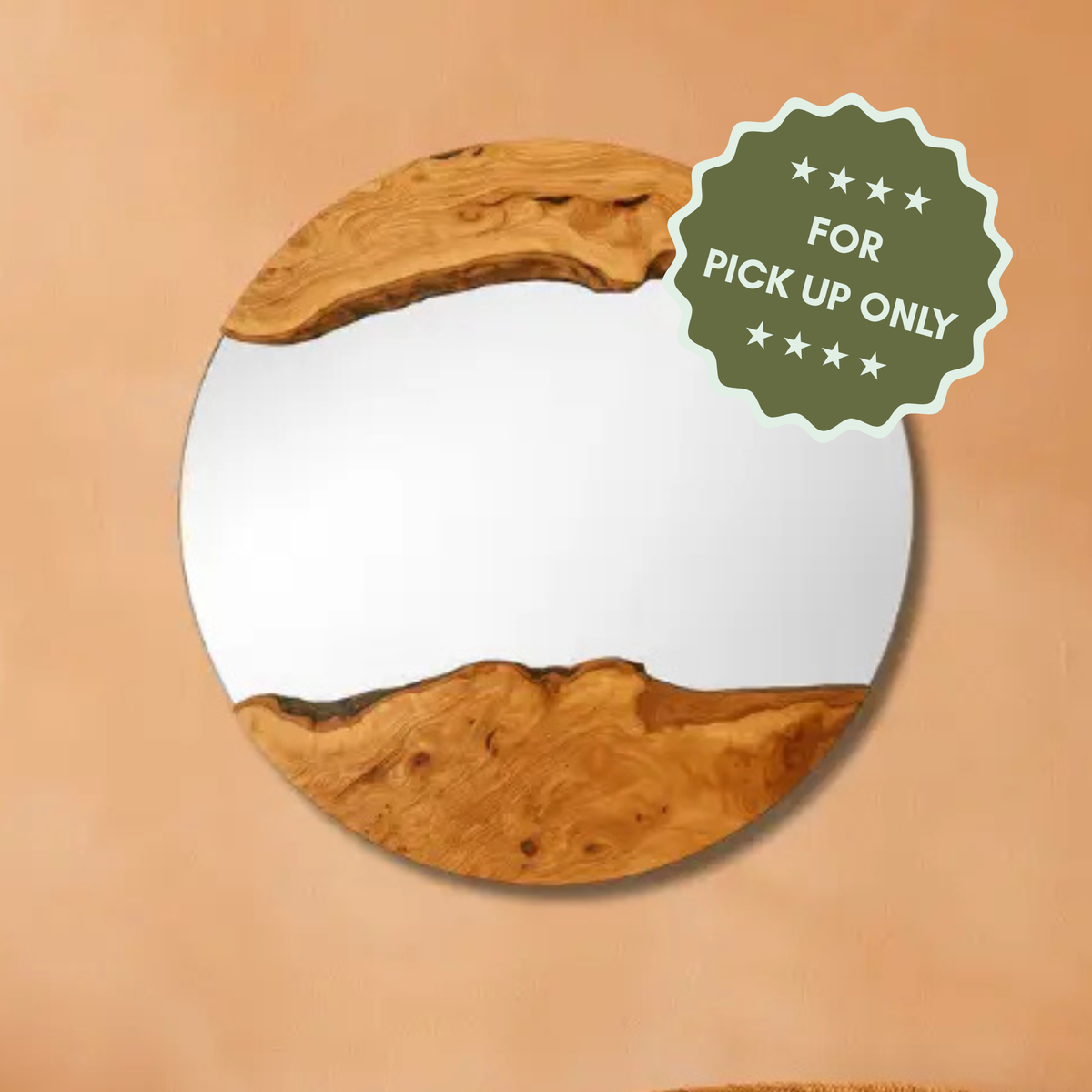 Elevate your space with these 90cm handcrafted olive wood wall mirrors, featuring a natural live-edge and artisan craftsmanship from Southern Spain. Each mirror is a one-of-a-kind piece, made from premium, locally sourced olive wood and mirror. Fully assembled with mounting hardware included—perfect for refined homes, villas, and boutique hotels.